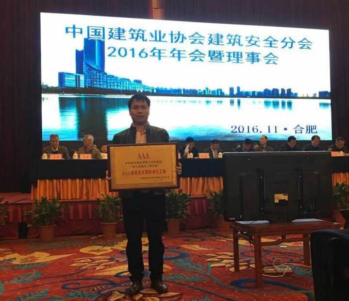 11月30日,在安徽省合肥市召開(kāi)的2016年中國(guó)建筑業(yè)協(xié)會(huì)建筑安全分會(huì)年會(huì)暨理事會(huì)上傳來(lái)喜訊,由我公司負(fù)責(zé)監(jiān)理的廣西九洲國(guó)際項(xiàng)目經(jīng)過(guò)項(xiàng)目全體同志的共同努力,項(xiàng)目順利被中國(guó)建筑業(yè)協(xié)會(huì)評(píng)選為“國(guó)家AAA級(jí)安全文明標(biāo)準(zhǔn)化工地”!