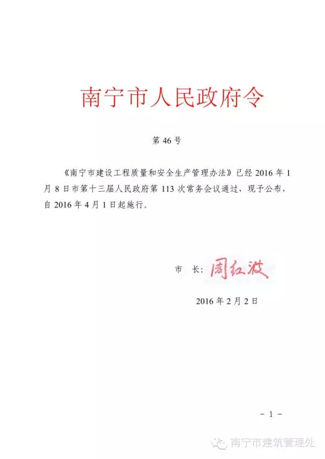 南寧市建設工程質量和安全生產管理辦法